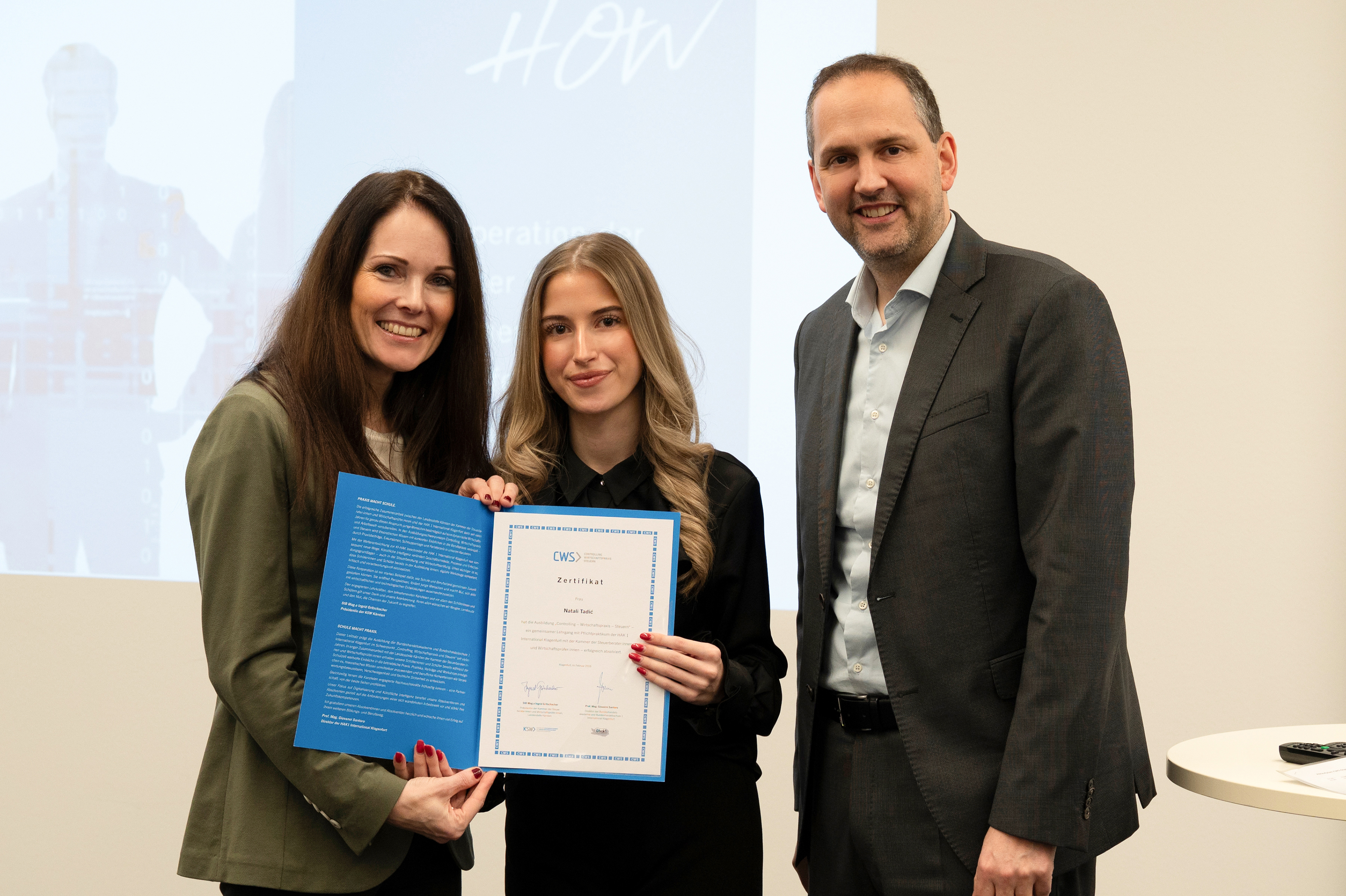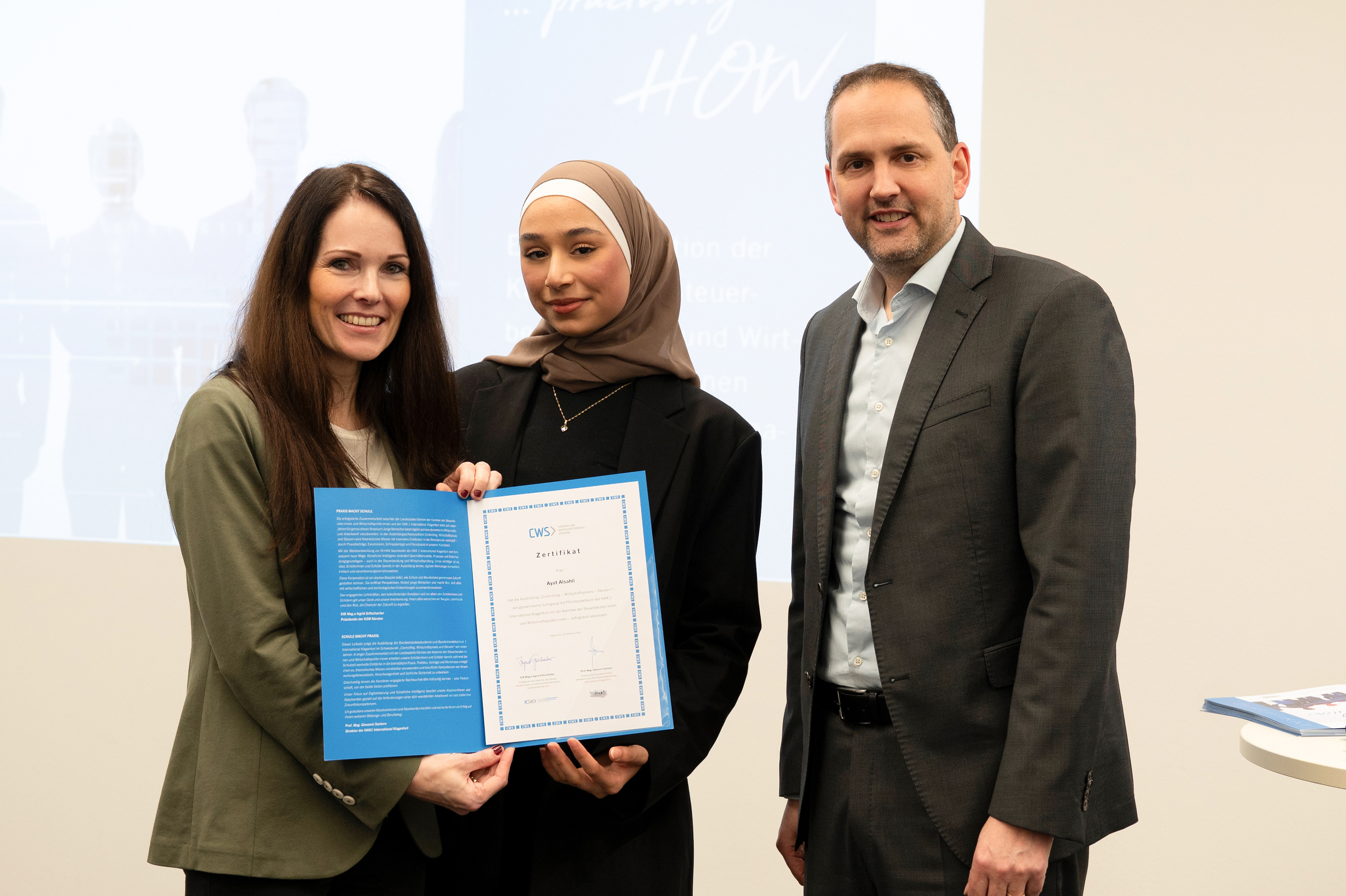Der Ausbildungsschwerpunkt „Controlling – Wirtschaftspraxis – Steuern" wird in Kooperation mit der Kammer der Steuerberater und Wirtschaftsprüfer geführt. Ein wesentliches Element des Ausbildungsschwerpunktes ist die duale Ausbildung. Die Praxistage in den Kanzleien der SteuerberaterInnen und WirtschaftsprüferInnen sind zentraler Bestandteil der Ausbildung.